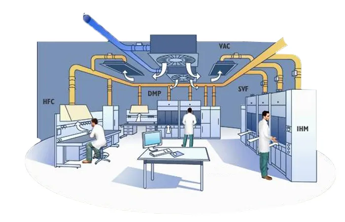 一間負(fù)壓手術(shù)室通常包括一個通風(fēng)系統(tǒng),以便空氣從走廊或者任意相鄰區(qū)域流進(jìn)負(fù)壓手術(shù)室,同時確保污染的空氣無法從負(fù)壓手術(shù)室逸出,流入醫(yī)院和衛(wèi)生機(jī)構(gòu)的其它區(qū)域。自然條件下,空氣從高壓帶向低壓帶流動。